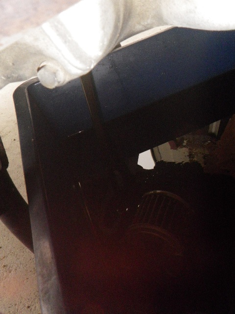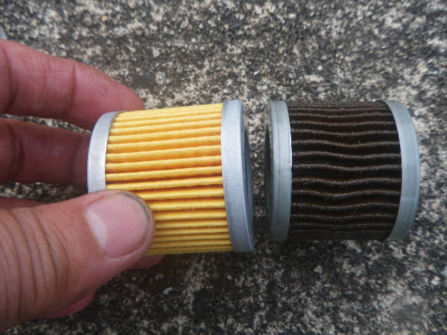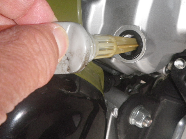 写真の関係かオイルがかなり汚れているように見えます。クロスカブのエレメントがオイルの中に入って写ってる。