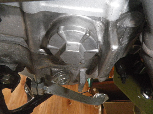 三方の8mmのネジを外します。右上のちょっと大きめのボルトは関係ないです。