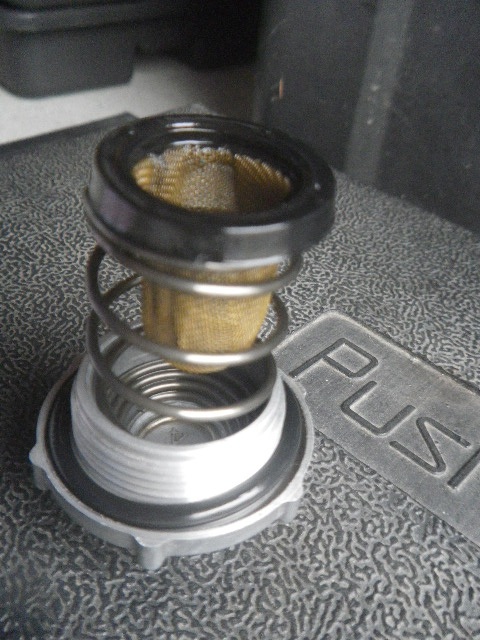 中にスプリングとストレーナが残ってます。スプリングがちょっとのぞいてる。