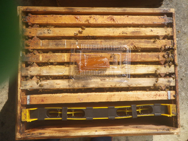 巣枠を2枚増やして、砂糖水1㎏と練り餌を給餌。